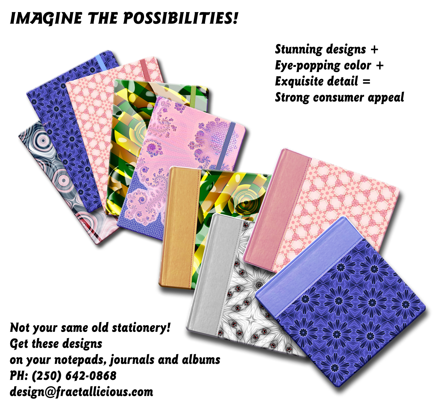 To view the screenshot above in more detail, please click on the image, then zoom in again. Or scroll down for some suggested designs for use on notepads, journals, albums, student binders and other items for retail in stationery stores. Use one of the designs below, or select one of our
