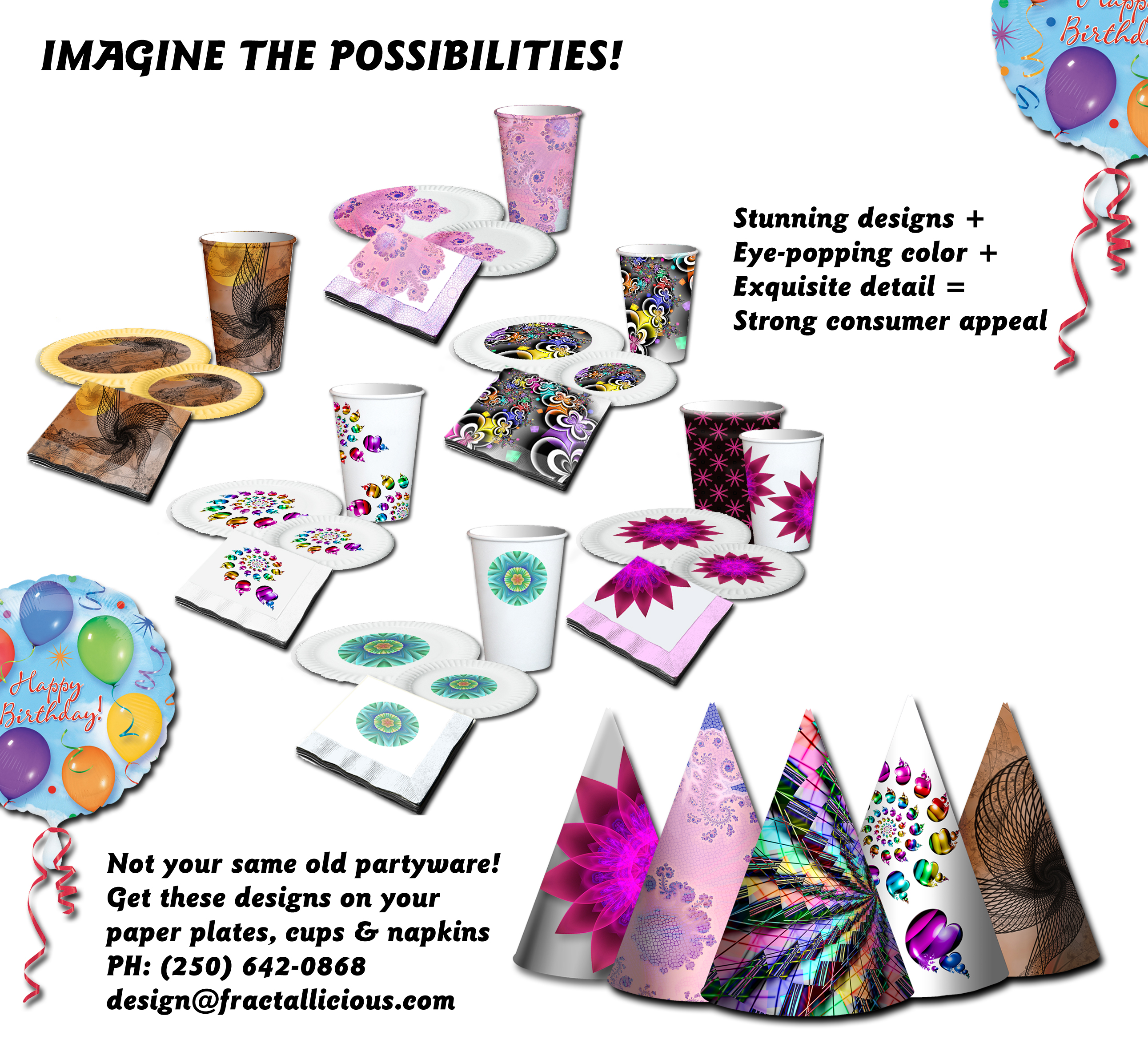 To view the screenshot above in more detail, please click on the image, then zoom in again. Or scroll down to view a sampling of our many designs that we think would make spectacular paper plates, cups, napkins, table covers, hats, favor bags, and other party supplies. Use one of the designs below, or select one of our